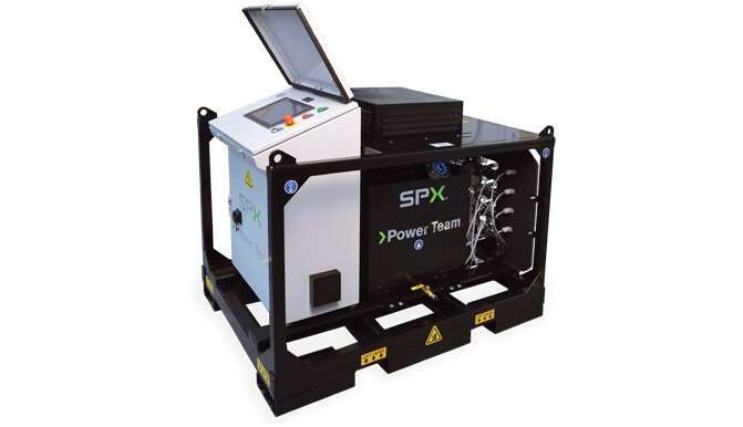 Power team synchronized lifting and lowering system, the MCS ( motion controller system ) series can be used in many hydraulic applications where load position is critical, requiring cylinder synchronization. Whether it is a bridge, a building or any kind of heavy load, with the SPX FLOW power team motion control system, lifting, lowering, pushing, pulling, tilting or positioning loads can be carried out automatically with a high degree of accuracy. The PLC-controlled system is a combination of digital actuation and digital control providing significant advantages such as time savings, repeatability, and extremely low internal stress in the object one is moving. The system also provides documentation for the movement performed.